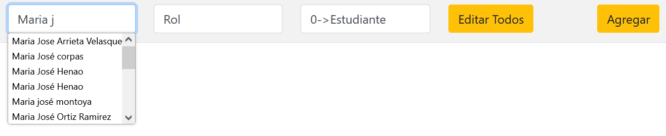 Escriba el nombre del estudiante, la lista del los estudiantes